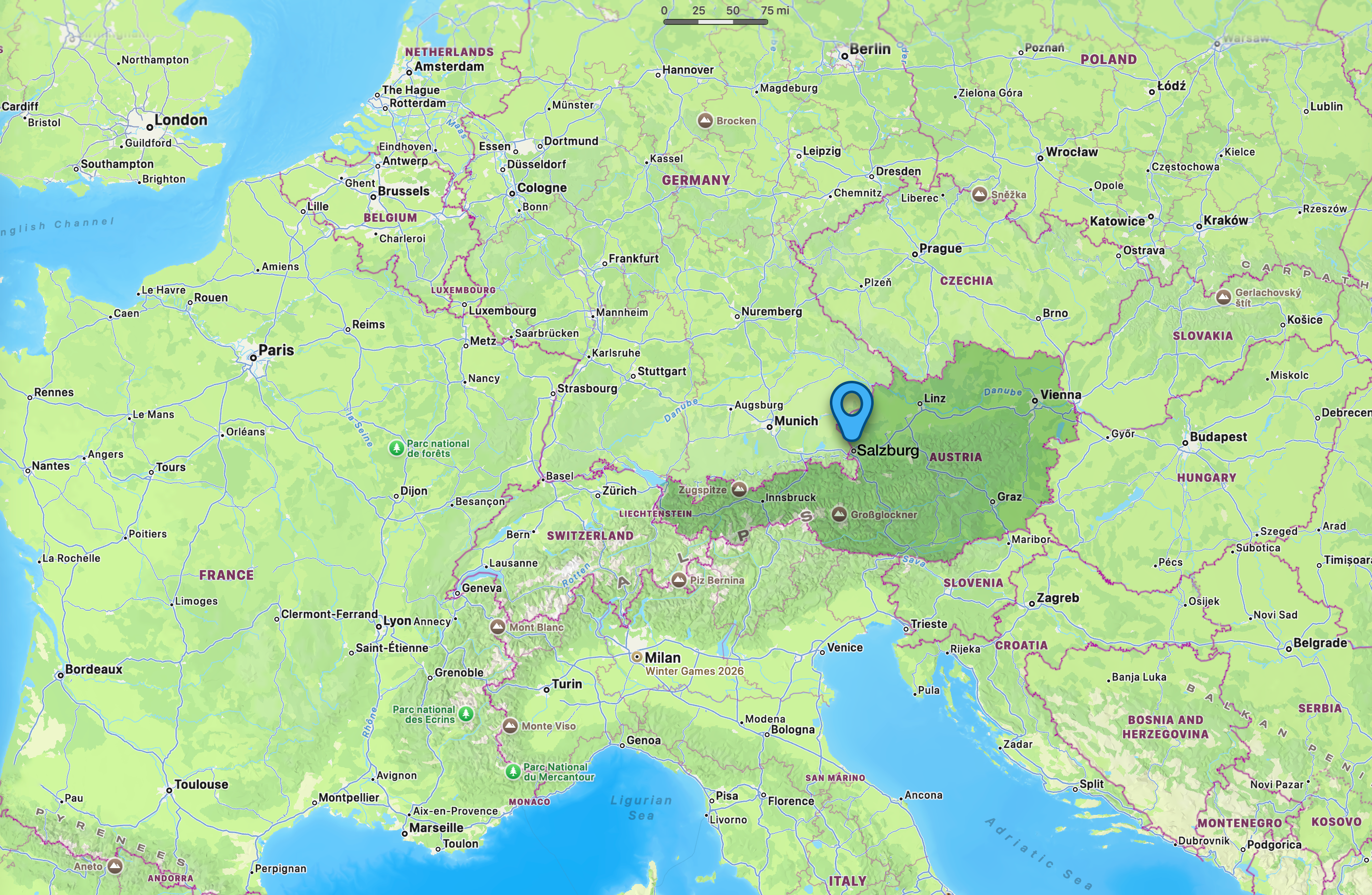 The main railway station, Salzburg Hauptbahnhof, is 1 km from our hotel. It is a 12 minute walk or a 5 minute drive.